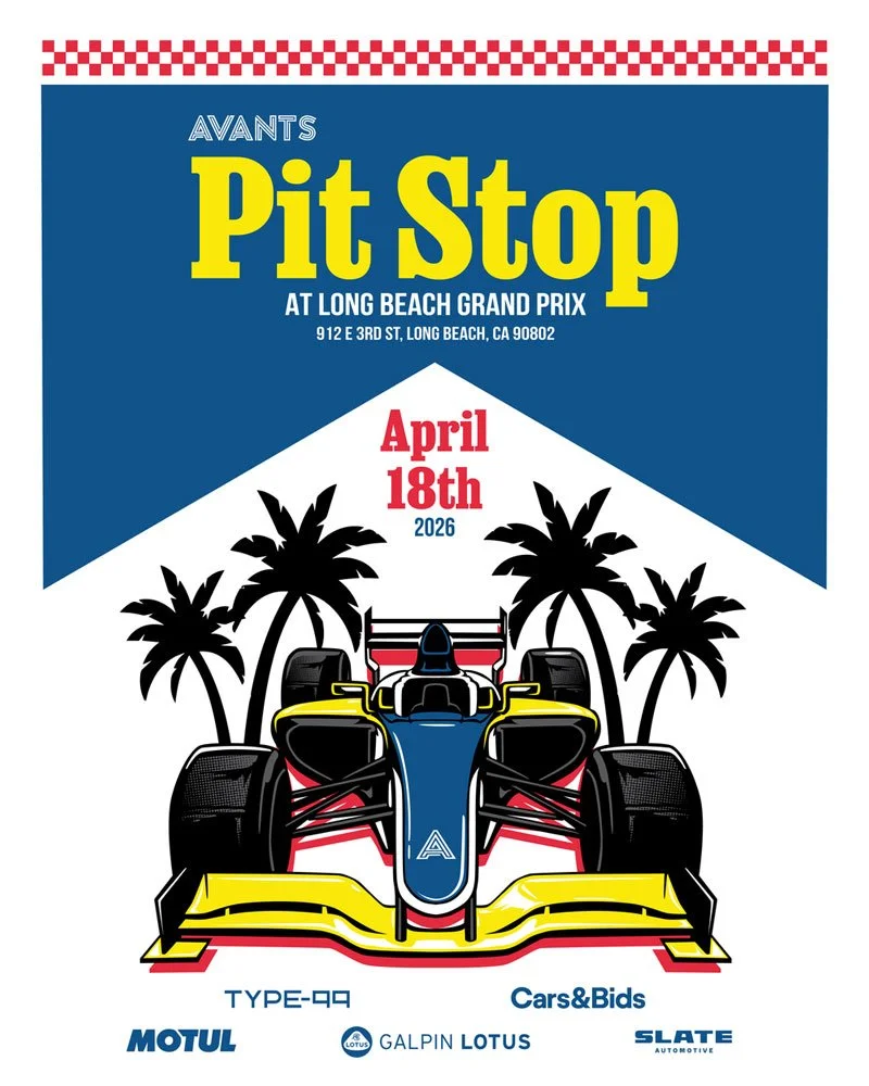 After a full day at the Long Beach Grand Prix, come join us on Saturday, April 18th at the Avants Pit Stop. Connect with fellow enthusiasts and enjoy the unmistakable atmosphere of Grand Prix weekend!
